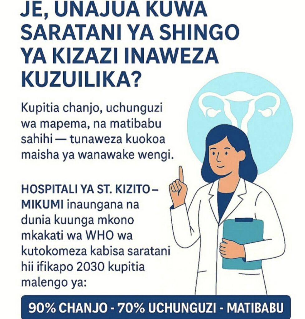 Een mooi voorbeeld hiervan is het initiatief van een groepje studenten dat voorstelde om de lokale bevolking te screenen op hart- en vaatziekten en baarmoederhalskanker. Na overleg en organisatie werd de bevolking hiervoor opgeroepen. Tijdens kerkdiensten in de weken voorafgaand aan de betreffende zondag werd aangekondigd dat het St Kizito Hospital die dag gratis controles zou aanbieden.